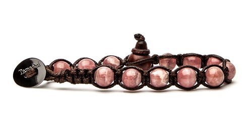 Bracciale Tamashii Rodocrosite. Cordoncino marrone in cotone cerato. Taglia unica ma predisposto per adattarsi ad ogni polso. La Rodocrosite è conosciuta anche come "Pietra del Cuore Compassionevole", rappresenta l'amore generoso e altruista, senza imposizioni, verso gli altri. Inoltre, si pensa agisca come forza liberatrice facendo scorrere le energie racchiuse nella sfera fisica e in quella spirituale. Questa gemma fortifica la propria capacità di percezione in modo da poter entrare in relazione con il passato e ritrovare ricordi smarriti. MADE IN TIBET