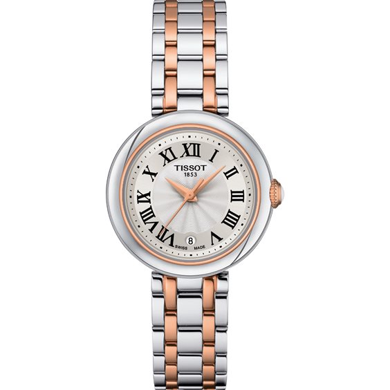Il Tissot Bellissima Small Lady colpisce per il suo design elegante e per i bellissimi dettagli. Questo modello ha un movimento al quarzo Swiss-Made e un vetro zaffiro antigraffio con numeri romani e datario. La cassa in acciaio inossidabile 316L racchiude il quadrante bianco e il bracciale in acciaio inossidabile 316L con chiusura a farfalla con pulsanti.