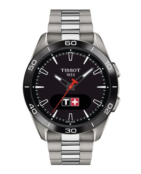 Diametro:43.75 mm Energia solare Cinturino in Titanio intercambiabile a sgancio rapido cassa in titanio anallergico Lunetta in ceramica di colore nero antigraffio . Quadrante nero. Sistema operativo SW ALPS connesso con tecnologia tattile solare Vetro zaffiro tattile antigraffio Autonomia infinita in modalità non connessa e di 6 mesi in modalità connessa Compatibile con i sistemi Android, iOS e Harmony ( Huawei ) Combinando l’artigianato svizzero con la tecnologia moderna, il Tissot T-Touch Connect Sport è avvolto da una cassa in titanio da 43 mm e dotato di un touchscreen AMOLED, garantendo funzionalità e stile. Misurando la frequenza cardiaca, la distanza, la velocità e le calorie con notifiche tempestive, questo orologio si adatta al tuo stile di vita attivo e sportivo. Vai oltre con l'app dedicata, che offre analisi approfondite di prestazioni, tendenze e approfondimenti sul benessere. Alimentato dall'energia solare e dal sistema SwALPS, offre un utilizzo prolungato senza necessità di ricariche frequenti. La durata della batteria è quasi perpetua in modalità orologio e dura diversi mesi nelle diverse modalità connesse. Con una varietà di lunette e casse, la collezione incorpora materiali nobili come la ceramica e il titanio, riflettendo un'estetica allo stesso tempo sportiva e raffinata. Partner quotidiano delle persone attive e attente alla moda, il Tissot T-Touch Connect Sport colma il divario tra l'orologeria tradizionale svizzera e la funzionalità pratica, rendendolo l'accessorio ideale, adattabile a varie occasioni e stili.