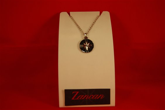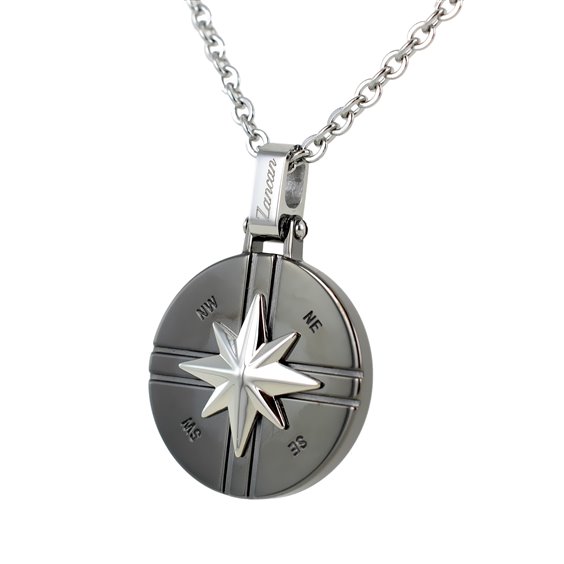 Collana da uomo in acciaio con modello rosa dei venti di pvd nero, chiusura a moschettone in acciaio
